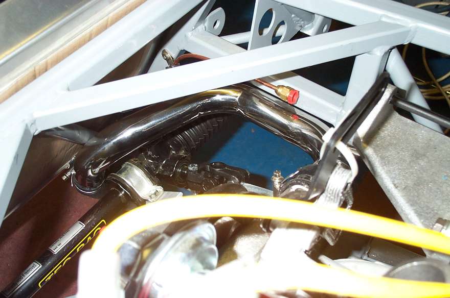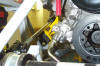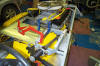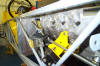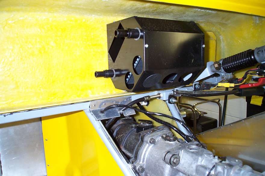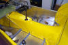 26th January | I Decided where I wanted to fit the reservoir for the brake and clutch cylinders, only trouble is that the back of the heater gets in the way of where the nuts go on the inside of the scuttle panel. After a bit of thought I was still convinced that this was where I wanted it so there was only one solution, 3 holes would have to be cut in the back of the heater, very carefully without damaging the radiator, some cardboard was placed inside for added protection. A small amount of non setting sealant around the edges of the 3 holes when the heater is finally fitted should stop any air getting lost. This has allowed the space on the foot well top panels to be used quite efficiently and leave enough space for the battery, windscreen washer reservoir and the fuel filter. The coolant reservoir was fitted after some riv nuts had been inserted into the foot well top panels. The coolant feed pipe could then be fitted hopefully missing the exhaust manifold and steering shaft. While I was working in this area the front wiring harness was fitted. The closing panel behind the master cylinders was cut to size and stuck into place with some “black death”. Trevor had come back to me very quickly with what he had done for the top hose and I have ordered the bits from Demon Tweeks, being awkward I wanted yellow hoses so I will have to wait a few weeks for them to arrive, don’t think this will hold me up as I seem to have a lot a small jobs left to complete, better get on with them soon as I am running out of space on my white board to list them. A quick calculation shows I have now spent over 200 hours on this already, I read somewhere that Westfield think that you could build one of their cars in 120 hours, but then I did not want an easy project! |