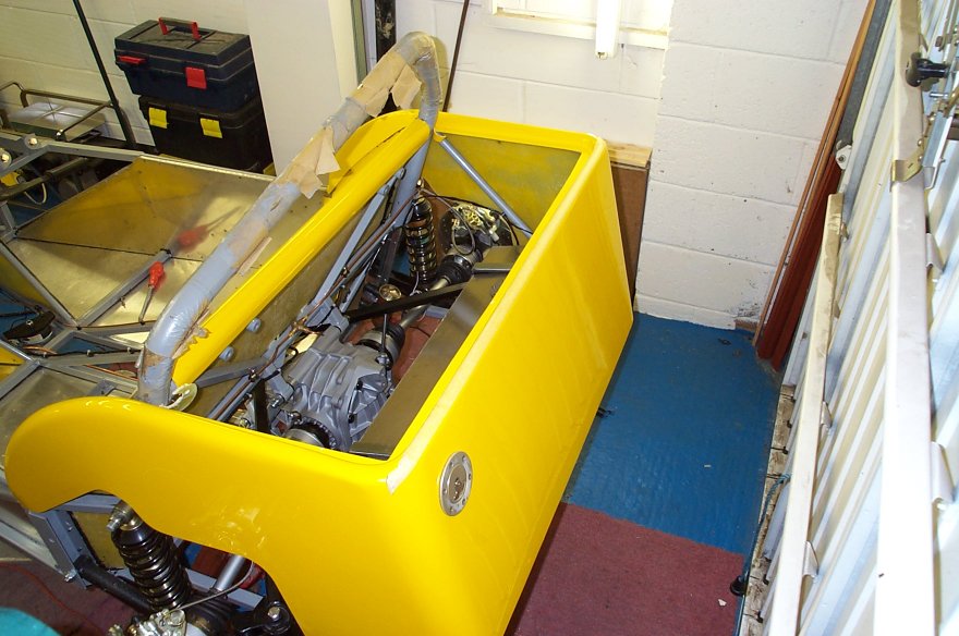 A bit of time off work this week so quite good progress has been made between the Christmas shopping. Rear harness is now in place, the fuel pipe has been fitted using a route that I hope will still look alright when the engine and gearbox is fitted. Rear bulkhead panel is riveted in position and the tub has been fitted. Lots of little jobs have been completed like fitting the throttle cable and return spring to the carb, fitting the fuel filler, cutting the hole in the scuttle panel for master cylinders, and the n/s side panel has been trimmed. I have also been able to take all the parts I want off the donor car including the delay wipe relay and switch which thanks to DROC “Hints & tips” I now know how to make work although it will probably be a task left till after the SVA test. |