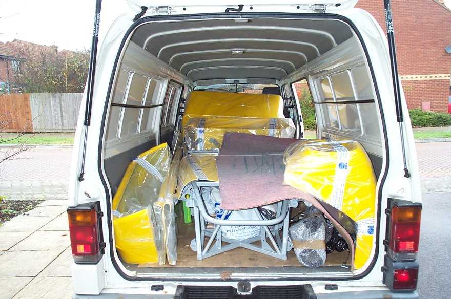 Collected the kit, took up more space than I expected in the van, glad I decided not to collect the engine at the same time, there would not have been enough room!. Sorted the bits out, everything appears to be here, only problem is a pedal rubber falling off because it was split. |