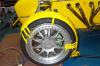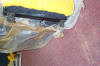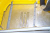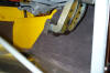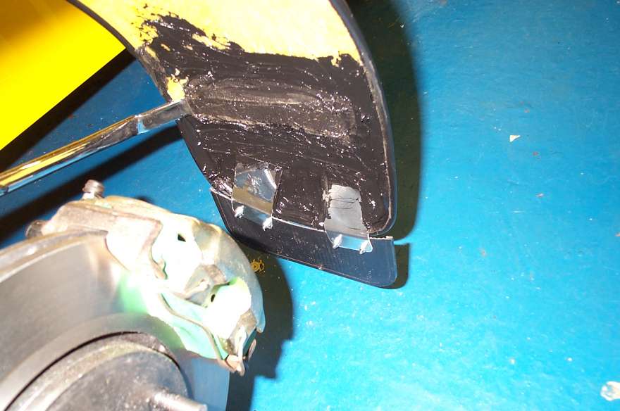 Time now to finish the cockpit area, I am not sure how much of this I remember as I was high on the fumes from the “evo stick” most of the time, most of the carpet was quite trying to fit, the manual as usual had got the wrong pictures of the carpet! I stuck down any carpet I thought I would not have to remove like the sides, rear floor and top half of the rear bulkheads, the rest were attached with Velcro. The gear leaver was cut as short as I could make it. The right angle brackets made for the passenger seat made up, these were quite tricky as the seat wanted to be as low as I could get it at the front so the back was at the angle of the rear bulkhead. In the end it fitted better than the driver’s ones so a few adjustment were made to that as well. Sunday was a day off as it was the kit car show at Stoneleigh. I met up with Huw who very kindly let me have his bonnet catch covers for the SVA. There were many Rushes at the show and it was good to meet up with a few people and see how the finished car should look. Monday was a bank holiday so I had another day to work on the car. The target today was to see if the car would drive, so despite no bonnet a quick trip down the road and back was taken, we only got to third gear but things seemed to work so I would stand a good chance of making to the SVA test next Monday. The overriding impression of the very short drive was of stones flying everywhere, so to protect things a bit, some front mud flaps would be required. I also noticed that the front caliper carriers were catching the discs very slightly so would require some adjustment. The mud flaps were made buy sticking 2 strips of aluminum with Wurth to the bottom of the front mug guards and them cutting down the cheapest set of mud flaps from Halfords to fit and bolting them on with 4 bolts. |