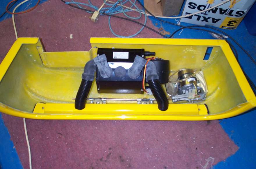 Visited Dax this week and picked up a batter tray and washer bottle, managed to get them fitted during the week. Saw the pictures of the new Rush MC Kawasaki with a great looking air scoop on the top of the bonnet, I just have to get one of these so I phoned Simon at Dax, looks like it will be a few weeks before they have the mould ready so I will have to be patient. With the help of a small box from Maplins I fitted the fuel filter, now I can see what space is left (if any) to allow the water wipes to get to the heater. While I was thinking about the heater pipes I started to make the fuel feed pipe from the filter to the carb, I have ordered the banjo fuel connection for the Edelbrock carb from “Real Steel” as there is no space with the original fitting to connect the fuel pipe to the carb under the 2” air filter I am using, and it points to the side of the car rather than the rear. The banjo fitting should cure both these problems (I hope!)