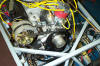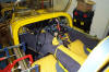 With the exhaust in place I could look at fixing the side panels to the underside of car, there had been various methods described during discussions on the “List”, I have decided to use some 5mm dome headed screws locating into rivnuts that take the place of rivet in the relevant place, to bridge the gap between the bottom of the side panel and the chassis a short length of 8mm copper was used so the screw had something to push against. This appears to have located the bottom of the side panel adequately especially if Wurth is used to fill the gap. Next task was the throttle pedal, I had been putting this off for months but this has to be done before the right hand side panel is fitted, the hole drilled for the cable to run through beside the brake pedal at hopefully the right place to get enough pedal travel to achieve full throttle. The hole was drilled in the pedal and a solder less nipple used to clamp the cable, I used some locktight on this as I fear that access will be very difficult once the side panel is on and I don’t want the cable coming loose. This all appeared to go remarkably well and I can get the throttle fully open. Next I decided to fit the front suspension on the side that the side panel was fitted, this was in case there were any problems that need to be sorted out. I managed to get the top wishbone upside down, but this was apparent when I tried to fit upright and luckily I had not put a nut on the bolt behind the side panel which is a real pain to fit and tighten up. Eventually it was all fitted and tightened up, the car is looking a lot wider at the front now! Then on Friday I found all my trim bits were ready, a quick trip to Dax left my credit card wincing but the car full of high back seats, carpets, dash board, doors and the tub cover. While I was there Peter very kindly spent some time showing me how to fill in all the relevant forms. The weekend was spent playing around with the various bits seeing how they fitted together, while the drivers side panel was off I fitted the inner foot well carpets, that was difficult enough with some access, I am not looking foreword to doing the other side! I made a couple of “L” shaped brackets for the front of the seats and fitted bolts in the front cross member to attach them to, the holes were drilled in the rear cross member and the seat fitted (wish it was as easy as that!) The seat was fitted and I had a chance to see if the driving position was going to be alright (not sure what I could do at this stage if was not!). Luckily it all seems fine, the high back seats are as comfortable as I hoped and as far as I can tell at this stage the driving position feels very good.
